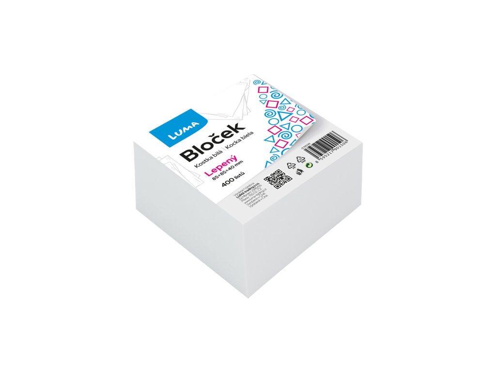 Bloček KOSTKA bílá 85 x 85 x40mm lepená LUMA