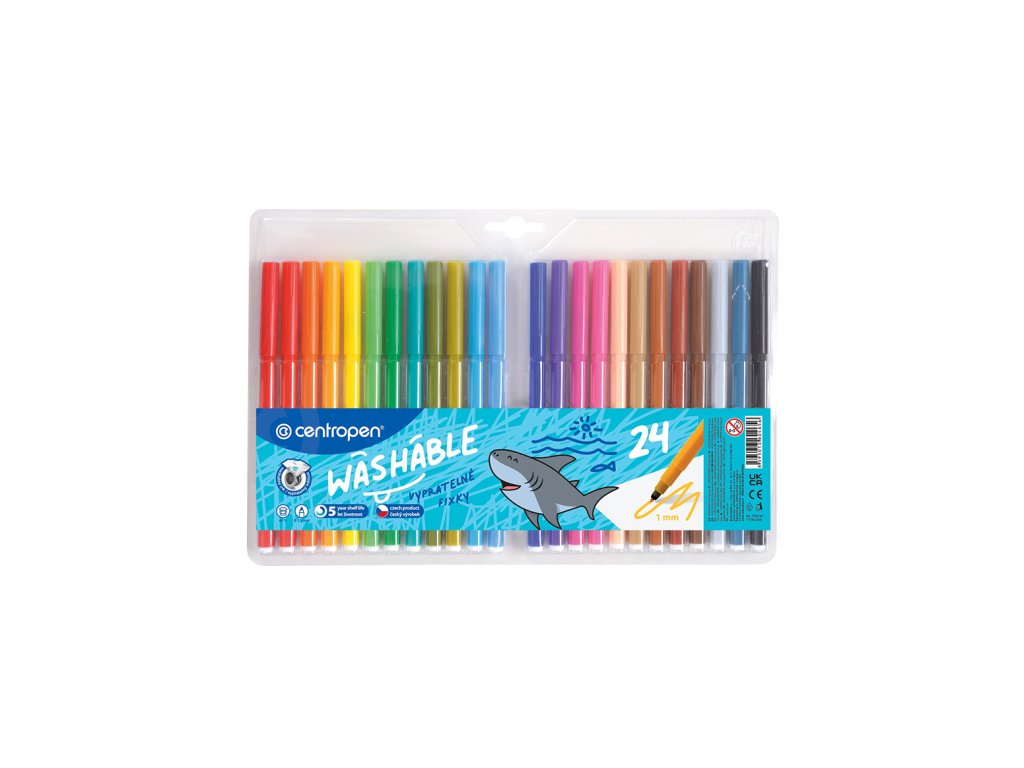 Barevné popisovače. Zdravotně nezávadný inkoust. Odolávají vyschnutí až 5 let. Vypratelné. Válcový hrot odolný proti zatlačen. Šířka stopy 1 mm.