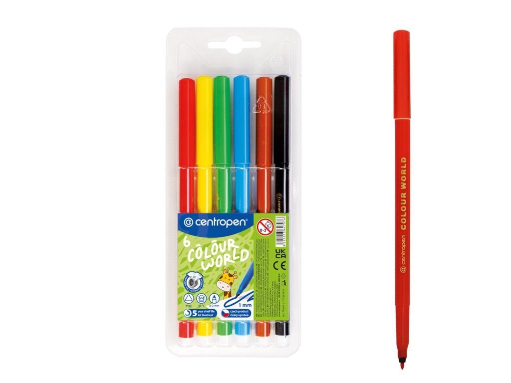 Sada popisovačů s ventilačním bezpečnostním chránítkem, ergonomický úchop pro lepší držení. Zdravotně nezávadný, vypratelný inkoust. Odolávají vyschnutí až 5 let. Válcové hroty odolné proti zatlačení. Syté a zářivé barvy. Mix barev. Šíře stopy: 1mm. Válcový hrot.