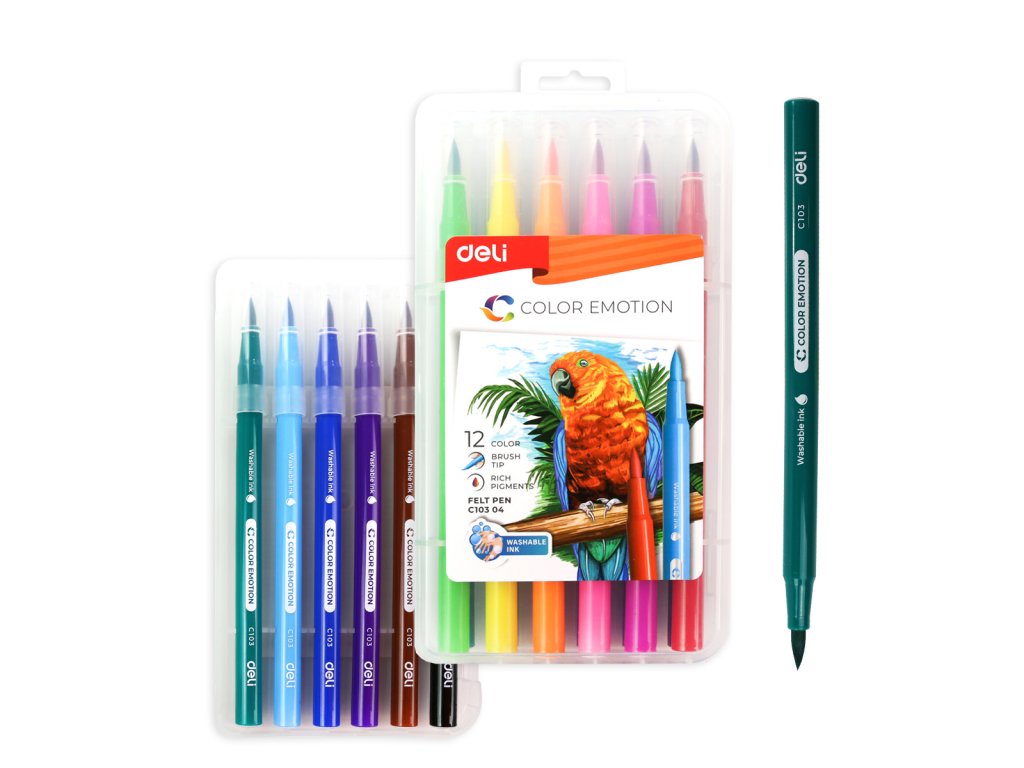 Fixy DELI štětečkové 12 barev Color Emotion