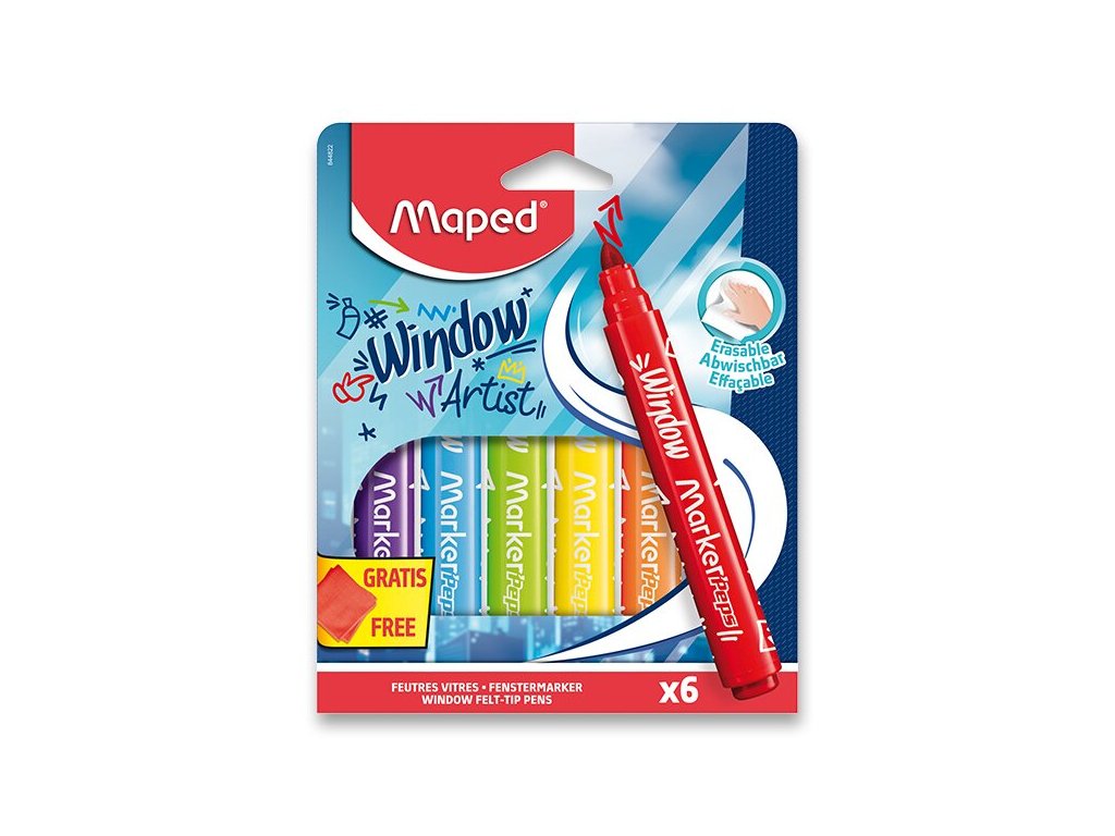 Souprava obsahuje 6 ks barevných fixů Maped Window pro psaní a malování na okna, zrcadla a skleněné plochy a 1 ks hadříku z mikrovlákna. Silné tělo a silný hrot pro pohodlný úchop a použití. Hrot odolný proti zatlačení či poškození, účinný uzávěr. Snadno omyvatelné pomocí mokrého hadříku.