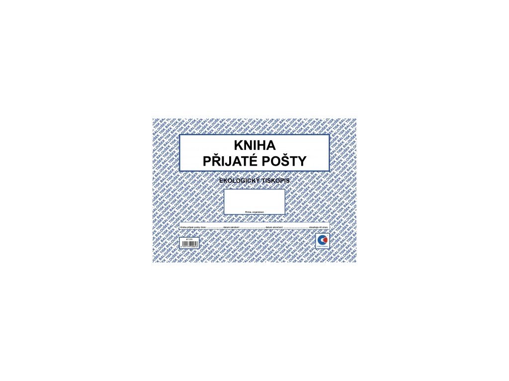 Kniha přijaté pošty. Tiskopis z recyklovaného hlazeného papíru. Sešit 40 stran , oboustranný tisk, formát A4 na šířku.