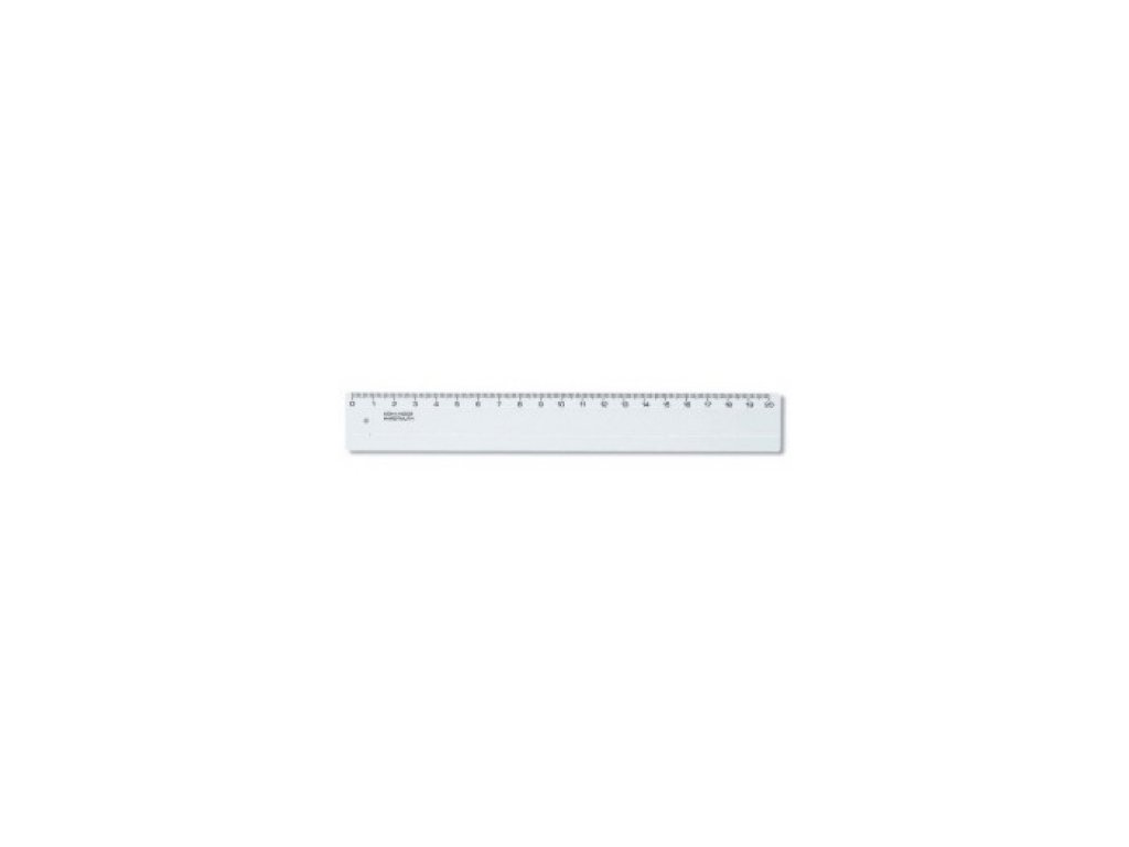 Pravítko z pevného, transparentního plastu. Délka 20 cm.