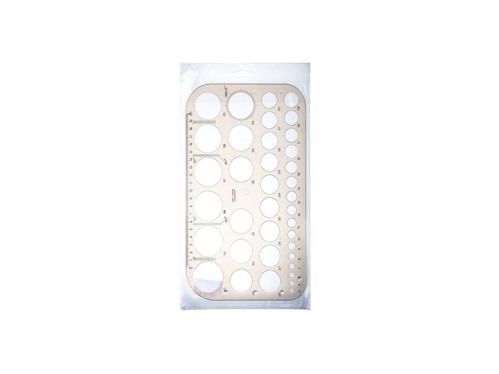 Šablona kružnicová Z37 - 749161. Umožňuje rýsovat kružnice daných průměrů od 4 mm do 40 mm.