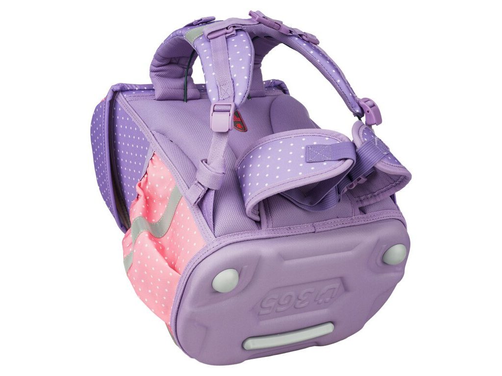 Kvalitní, ergonomicky tvarovaná odlehčená dívčí školní aktovka je vybavena reflexními prvky a anatomicky tvarovanými zády s pevnou konstrukcí.