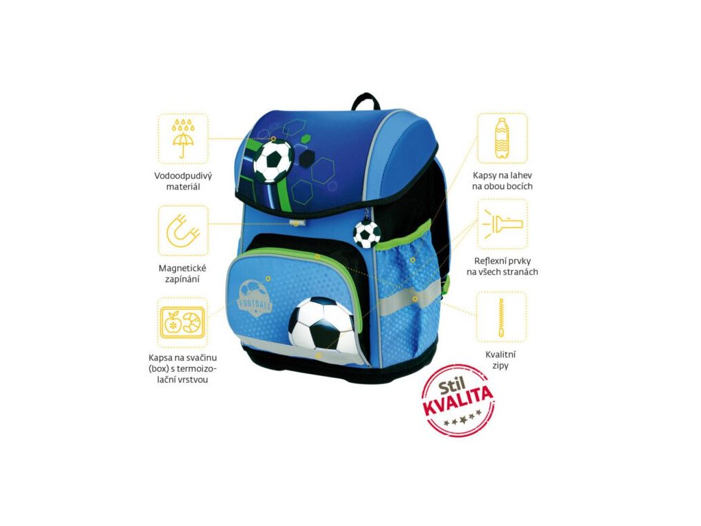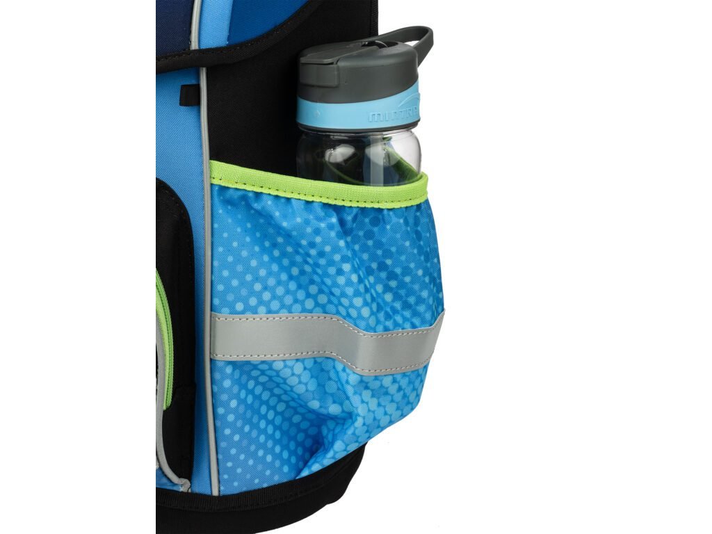 Kvalitní, ergonomicky tvarovaná odlehčená školní aktovka je vybavena reflexními prvky a anatomicky tvarovanými zády s pevnou konstrukcí.