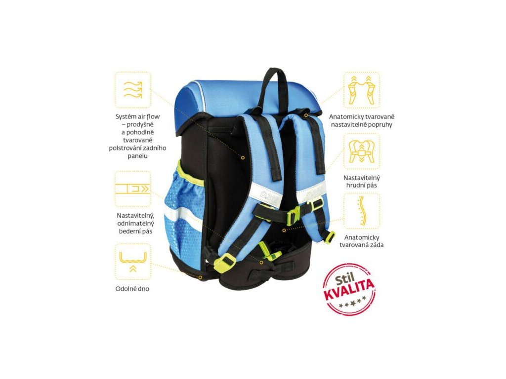 - BEZPEČNOST – bezpečnostní prvky jsou velmi důležité, proto je aktovka vybavena ze všech stran reflexními prvky, které zaručí lepší viditelnost a bezpečnost dítěte ve tmě