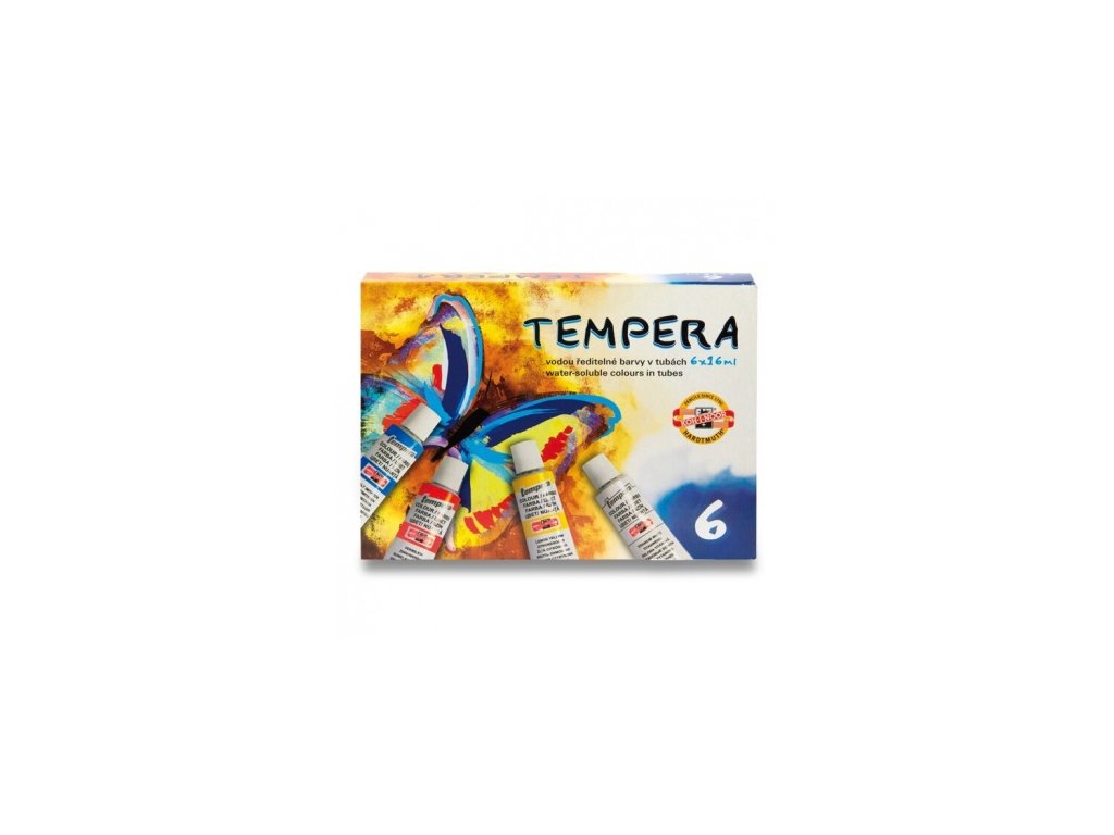 Český výrobek. Temperové barvy v tubách se snadno nanáší, dobře kryjí a jsou světlostálé. Snadno se míchají a vytváří tak celou škálu dalších odstínů a barev. Barvy jsou vodou ředitelné , velmi dobře schnou. 1 tuba obsahuje 16 ml barvy; díky šroubovacímu uzávěru jsou barvy chráněny před vyschnutím a vytečením. Baleno v papírové krabičce.