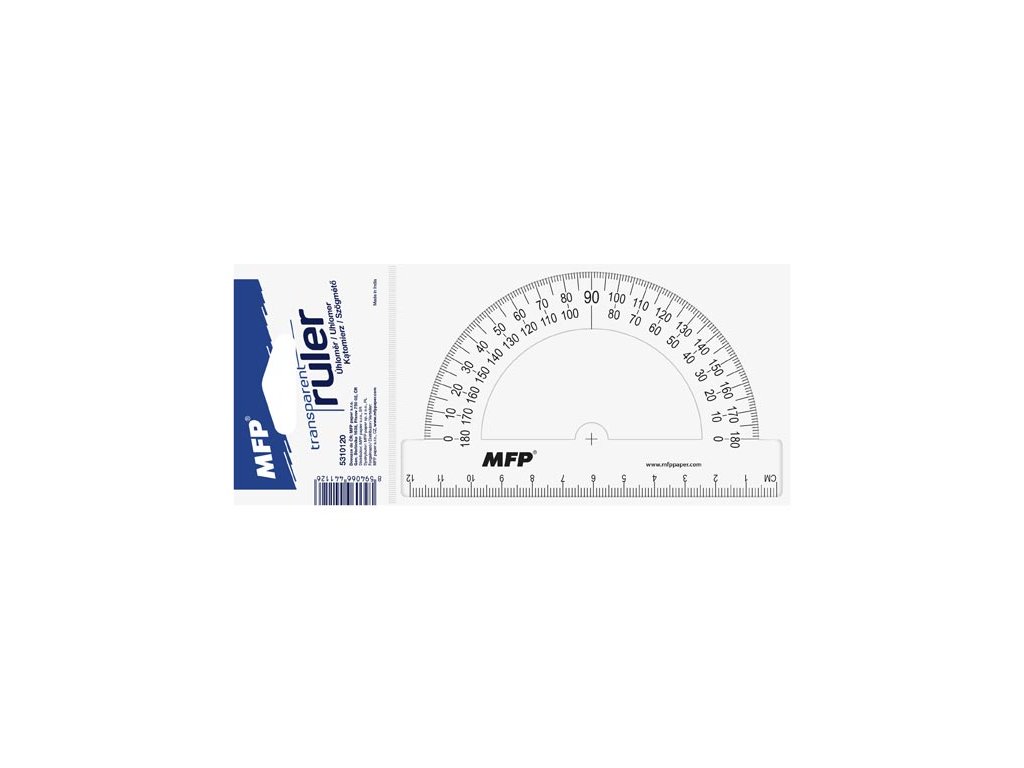 Školní plastový úhloměr. Možno měřit úhly do 180°, na spodní straně úhloměru je pravítko o délce 12 cm. Školní plastový úhloměr. Možno měřit úhly do 180°, na spodní straně úhloměru je pravítko o délce 12 cm. Průměr úhloměru: 12,5 cm. Barva: transparentní. Pravítko je zdravotně nezávadné a neobsahuje ftaláty.