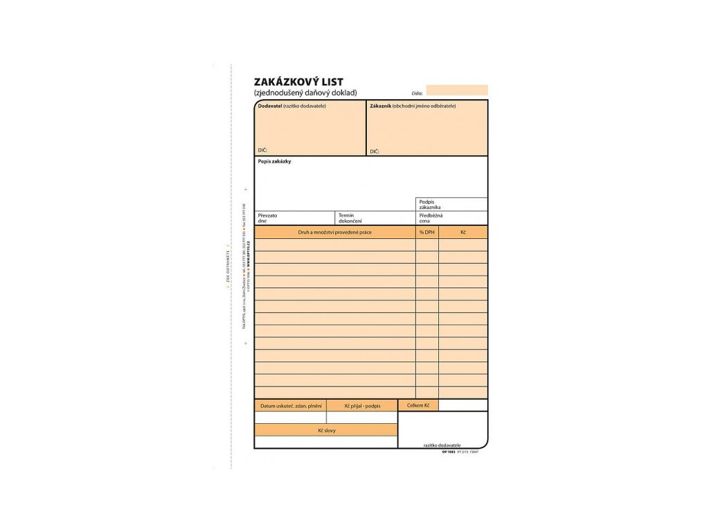 › Kancelářské potřeby › Hospodářské tiskopisy › Zakázkový list A5 samopropis, 100 listů